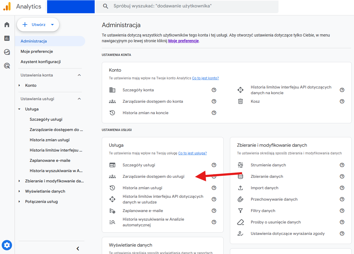 III. Instrukcja krok po kroku - Nadawanie dostępu do Usługi GA4